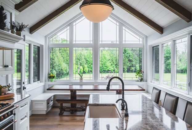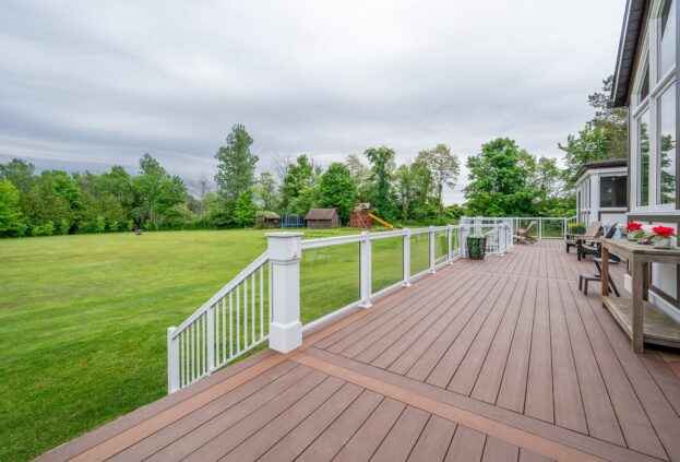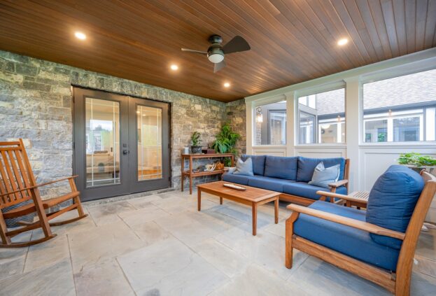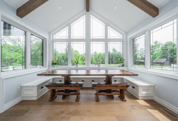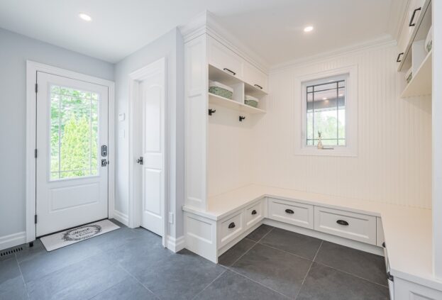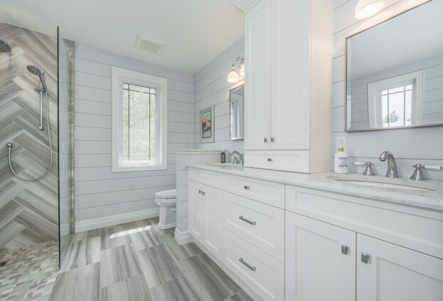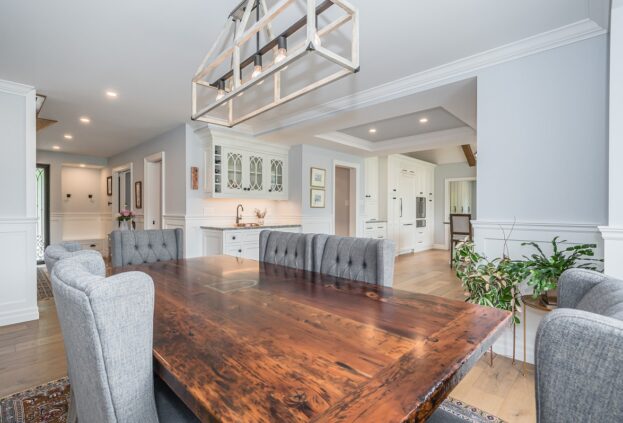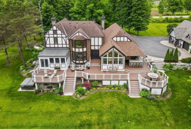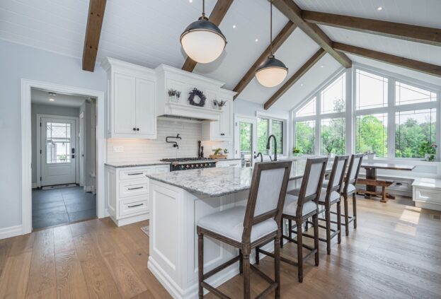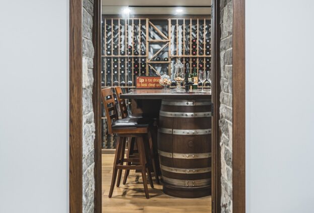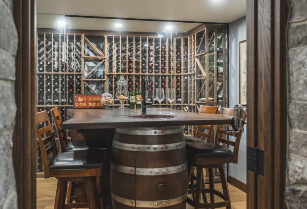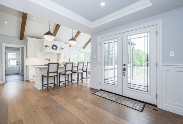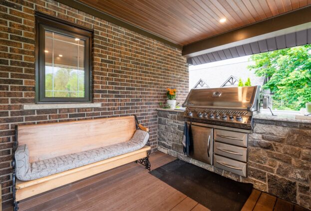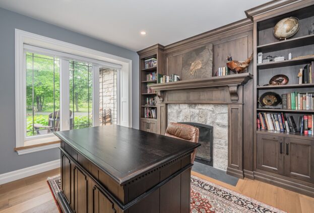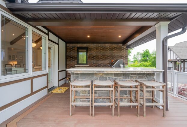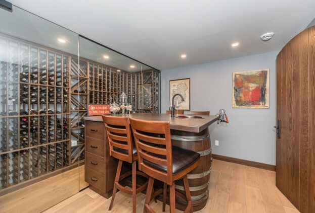 This project is a masterpiece of simple elegance in every part and detail. The French countryside theme carries through the kitchen with its beautifully imported range and ceiling details to the clean paneling and tasteful trim that stands the test of time. Downstairs, the wine room exudes warmth and privacy, while outside the sprawling composite rear deck with its entertainment sections overlooking the sloping lawn to rear wooded area evoke estate visions.