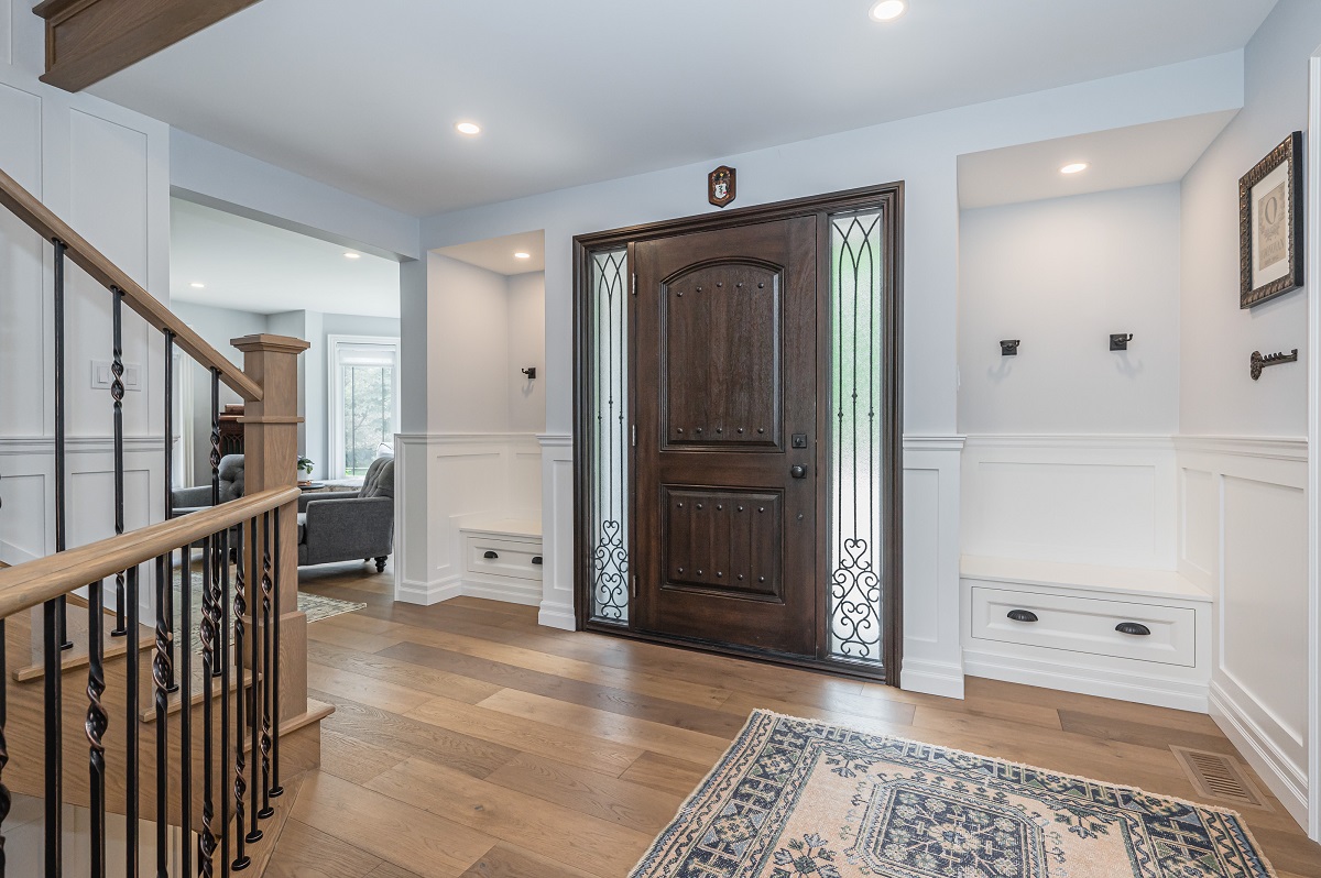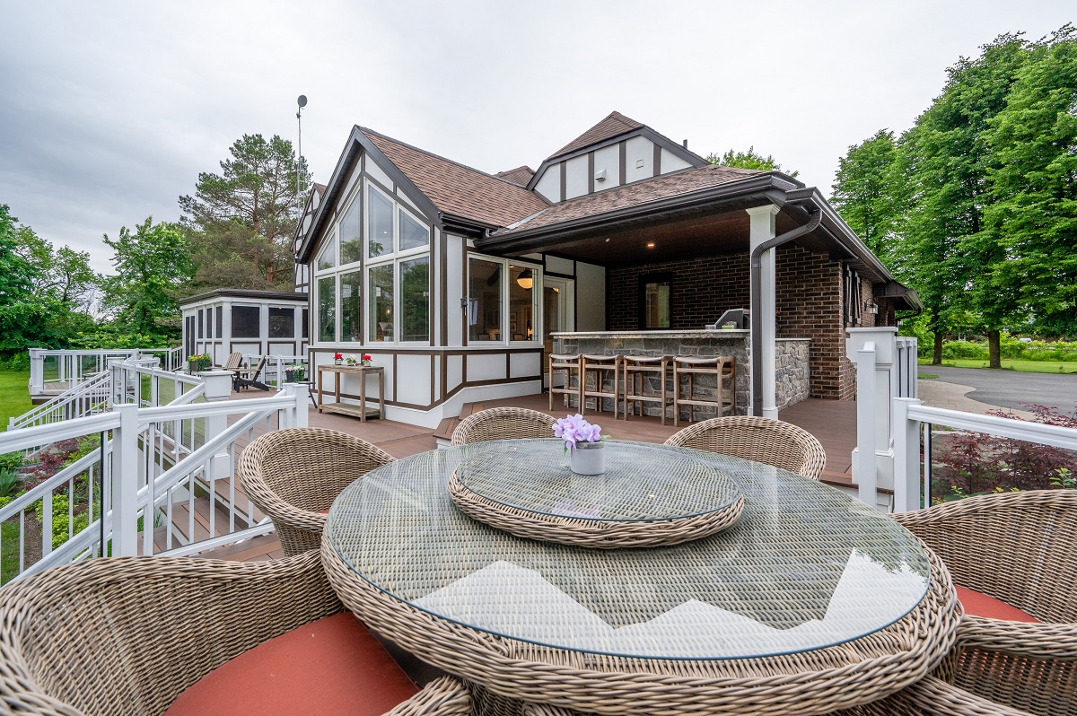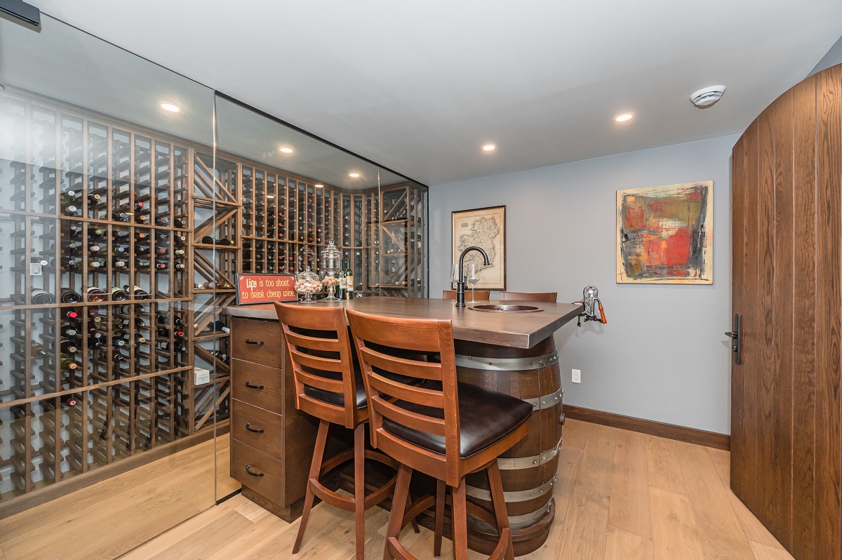 This project is a masterpiece of simple elegance in every part and detail. The French countryside theme carries through the kitchen with its beautifully imported range and ceiling details to the clean paneling and tasteful trim that stands the test of time. Downstairs, the wine room exudes warmth and privacy, while outside the sprawling composite rear deck with its entertainment sections overlooking the sloping lawn to rear wooded area evoke estate visions.