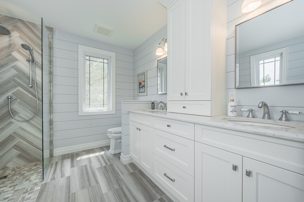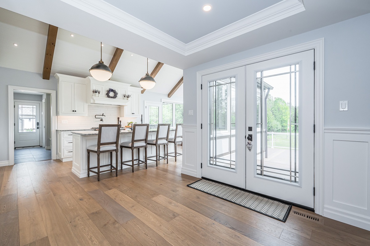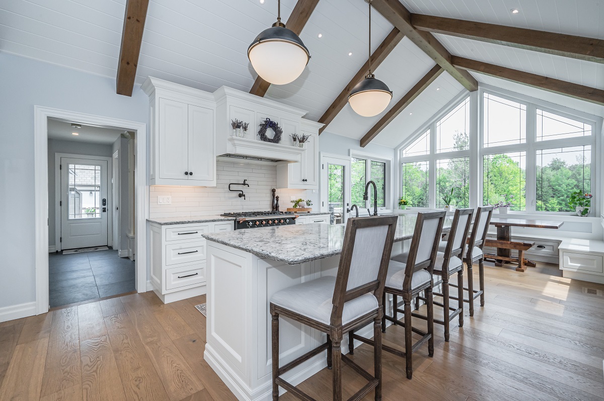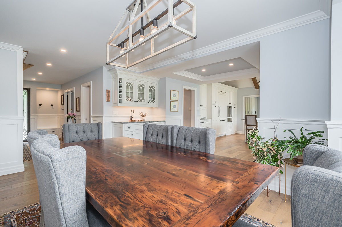 This project is a masterpiece of simple elegance in every part and detail. The French countryside theme carries through the kitchen with its beautifully imported range and ceiling details to the clean paneling and tasteful trim that stands the test of time. Downstairs, the wine room exudes warmth and privacy, while outside the sprawling composite rear deck with its entertainment sections overlooking the sloping lawn to rear wooded area evoke estate visions.
